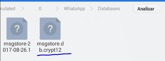 Para ello se crea un archivo con el formato msgstore-AAAA-MM-DD.1.db.crypt12 que está cifrado mediante una clave que se genera en el dispositivo cada vez que instalamos WhatsApp,