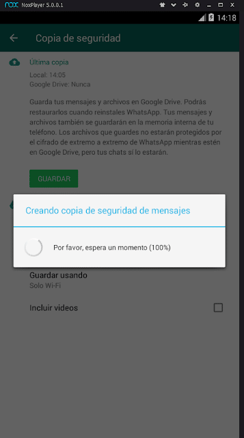 - Vamos ahora a hacer una copia de seguridad con WhatApp para cifrar de nuevo esas conversaciones, pero con la clave que se ha generado al instalar WhatsApp en el emulador.