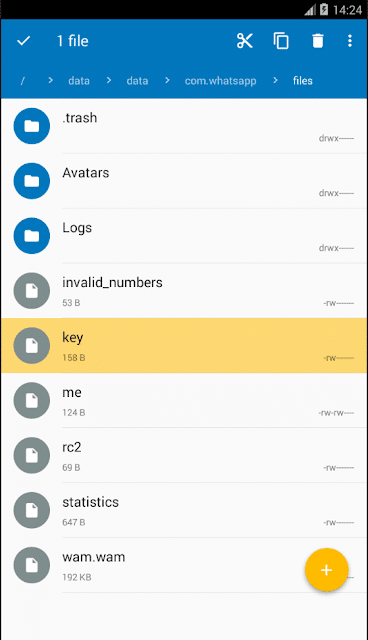 la base de datos de WhatsApp que se almacena en el dispositivo se ha mantenido cifrada,