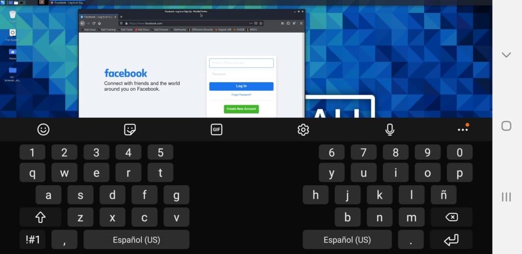 - Ahora con kex ejecutamos la máquina virtual y después abrimos Firefox.