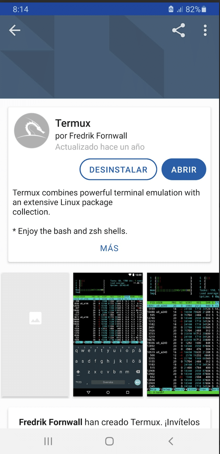 - termux: En resumen, Termux es un emulador de terminal para Android, que nos permite ejecutar comandos de Linux a través del shell. Primero, podemos instalarlo y usarlo en Android sin la autoridad de superusuario (root). Por lo que este entorno es seguro y nos permite probar repositorios de código abierto.