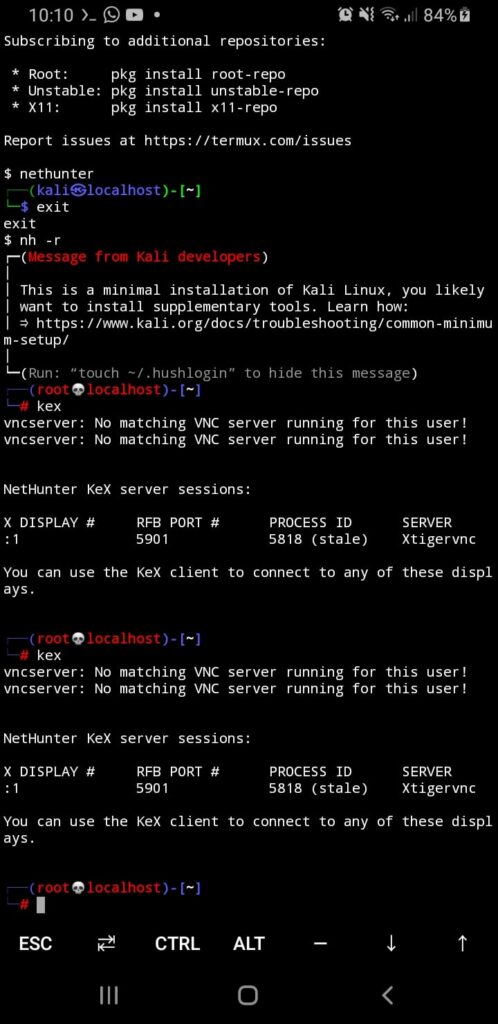 vncserver: no matching vnc server running for this user Nethunter Termux - Solucion