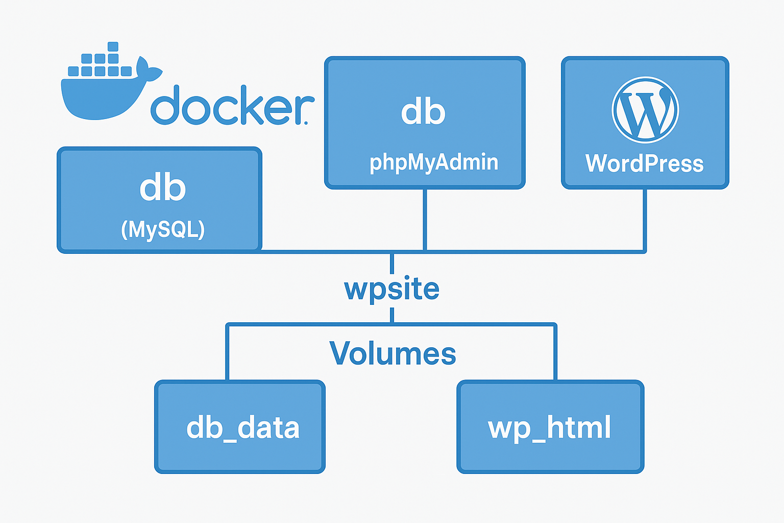 - Aislamiento y limpieza: cada servicio (MySQL, PHP/Apache, phpMyAdmin) corre en su propio contenedor.